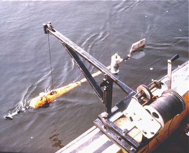Apparecchiatura per la misurazione della velocità delle acque fluviali.