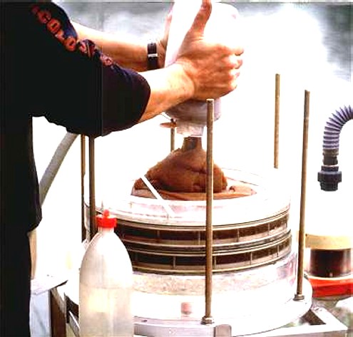 di carbone una volta messe a discarica. Nei vasi è stata impaccata la cenere su cui veniva irrorata acqua simulante